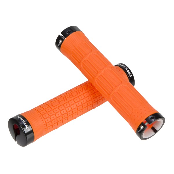 Les grips CHROMAG Clutch permettent d'assurer une prise en main confortable et sécurisante du cintre. Ils se fixent facilement et solidement grâce à leurs colliers lock-on, et reçoivent un revêtement agrippant en caoutchouc. Celui-ci est en effet "gaufré" pour favoriser l'adhérence de la paume de la main.